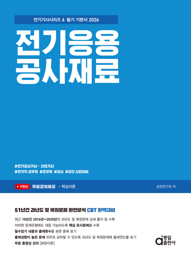 모든 산업의 기초가 되는 전기는 그 중요성에 의해 전문화된 기술을 필요로 하며 그에 따라 전기설비의 유지 보수, 설계 및 시공 분야에서의 책임은 일정 자격을 취득한 사람에게 한정되는 추세이며 출제문제 또한 지금까지의 기 출제된 문제와 동일한 문제가 계속 반복 출제되고 있는 추세입니다.