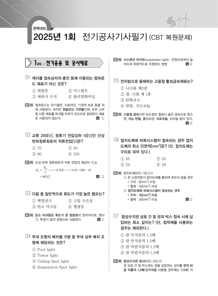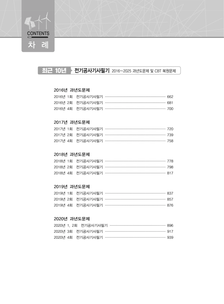 최근 10년 전기공사기사필기 2016∼2025 과년도문제 및 CBT 복원문제